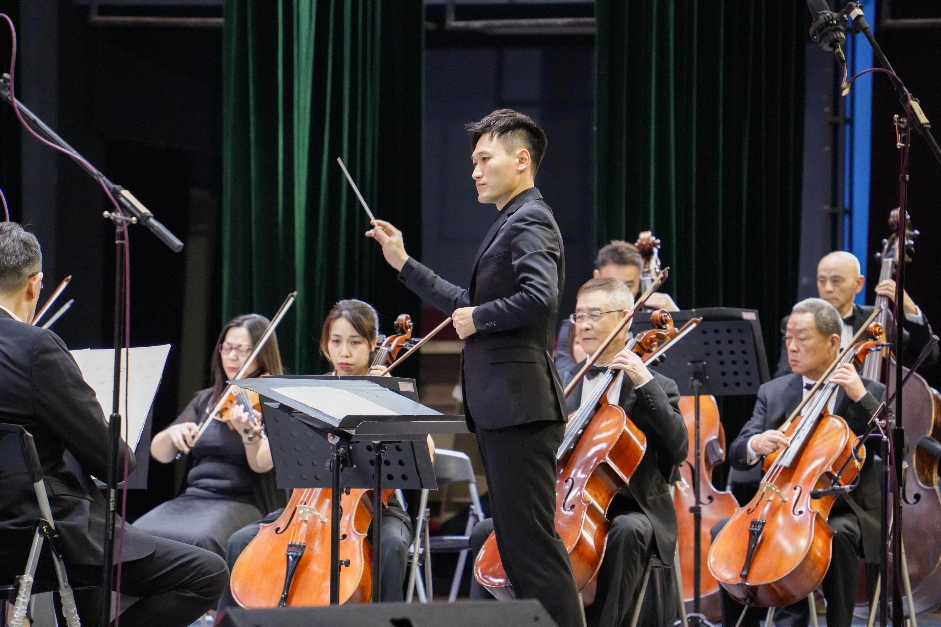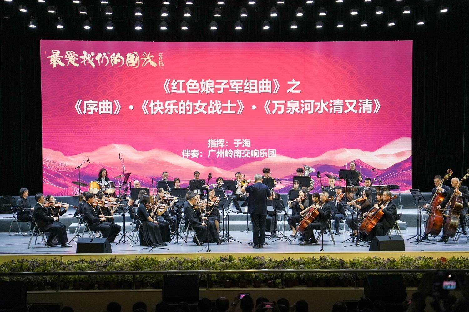 报告后,广州岭南交响乐团带来了精彩的演奏。《上海滩》的经典旋律、《弯弯的月亮》的诗意浪漫、《彩云追月》的灵动雅致,《海阔天空》的豪迈不羁,交响乐团奏响的旋律与观众心中的激情热血共鸣共振,一起点亮了这个夜晚。随后,于海亲自登台,执棒指挥,和广州岭南交响乐团共同演绎了《红色娘子军组曲》,以音乐回顾追寻那段红色记忆。