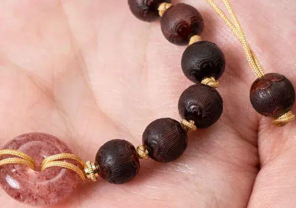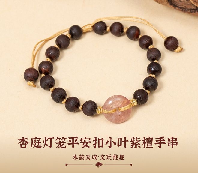 印度小叶紫檀灯笼珠(8mm)x18颗 + 平安扣 = 把四季平安缠腕上!