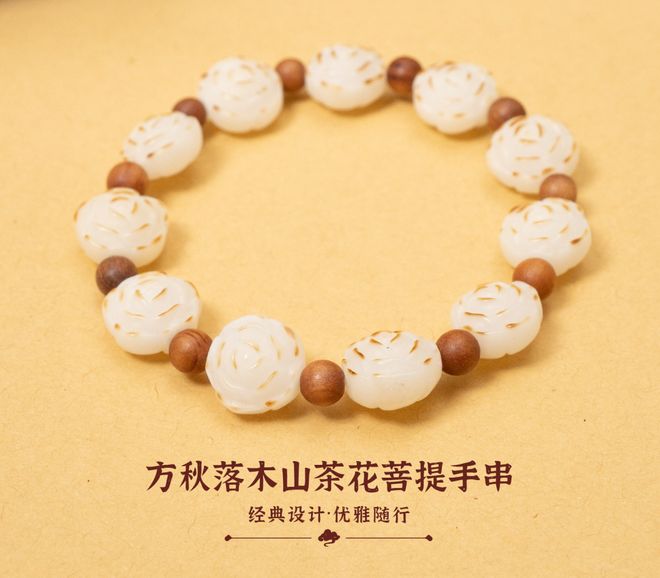 精选天然菩提根果实,质地坚实温润,经过盘玩会呈现更迷人的光泽。每一颗都精心雕琢成山茶花造型,花瓣层叠,优雅又精致。